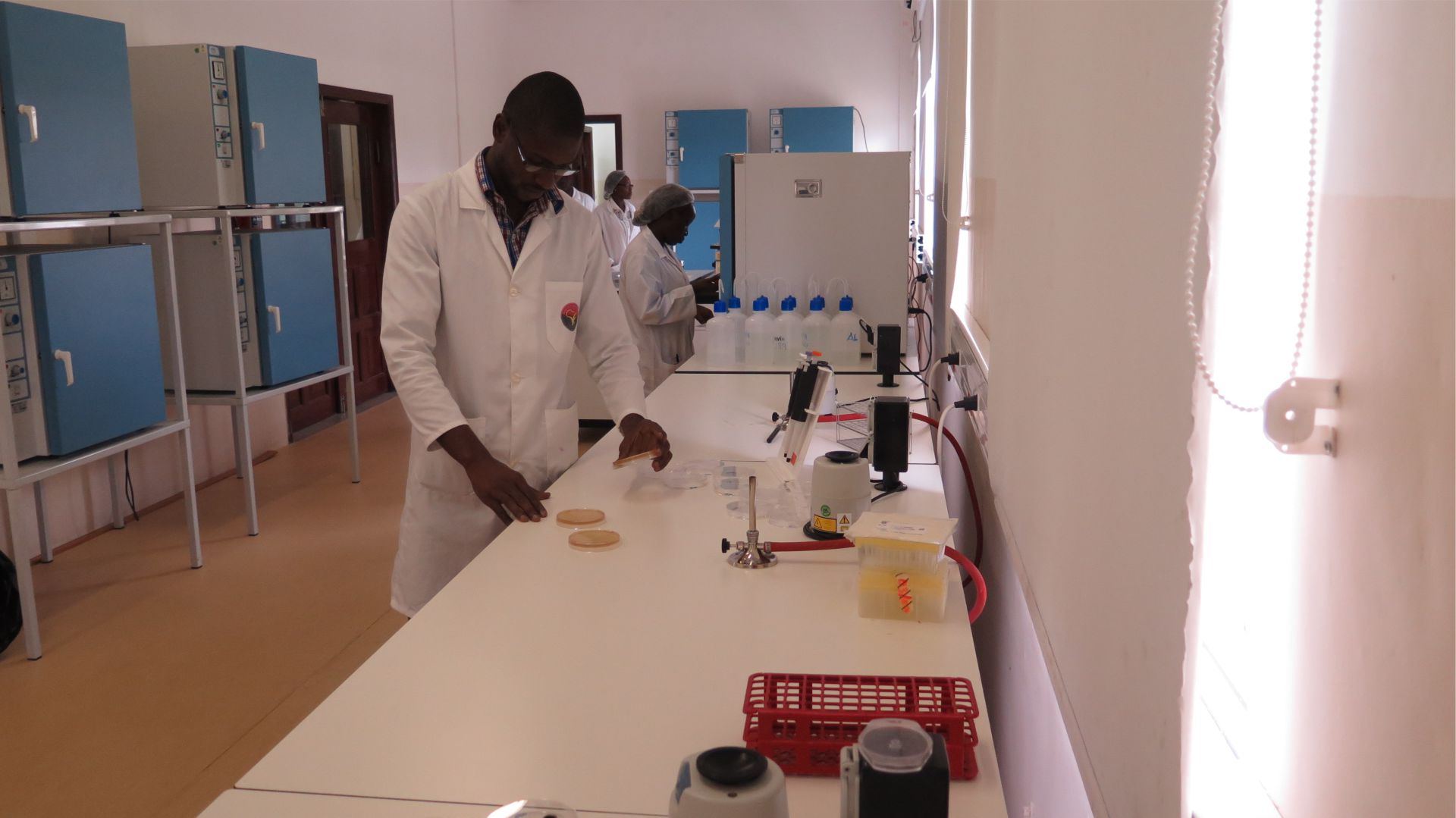 Llevamos a cabo la actividad profesional de gestión integral del laboratorio bajo la tutela del Instituto de Investigación Veterinaria – IIV de Angola, acogiendo a técnicos de laboratorio del instituto y formándolos en nuevas técnicas de laboratorio. Trabajando diariamente con las fuerzas gubernamentales locales, contribuimos para el desarrollo profesional y empleo locales.